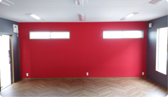 内装壁面は黒×赤のツートンカラーという個性的な配色ながらも、